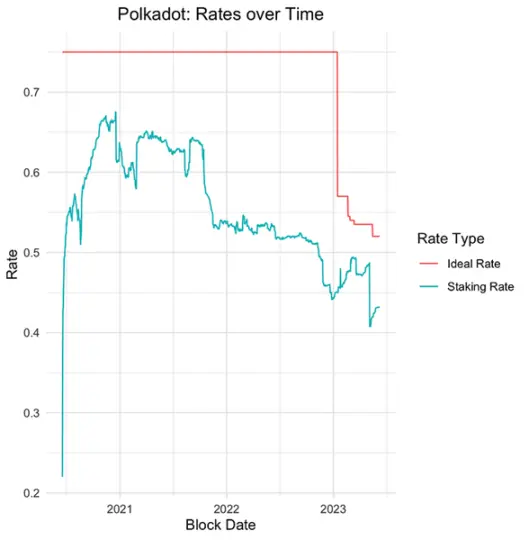 随后的图表描绘了质押率与理想利率相比的历史演变: