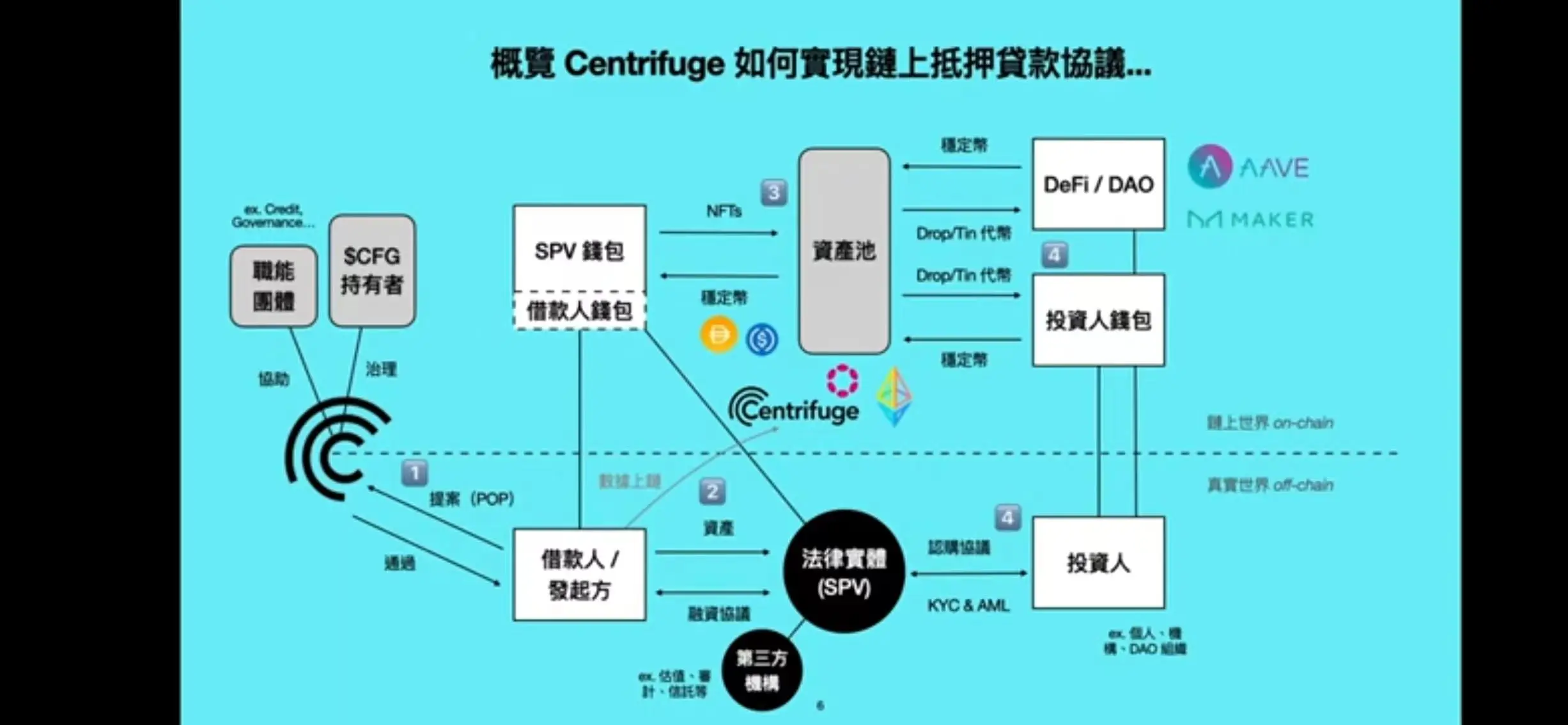 成功入选后,资产发行方和投资人需要基于 Centrifuge 链下的法律风险框架和链上的资产代币化来启动。