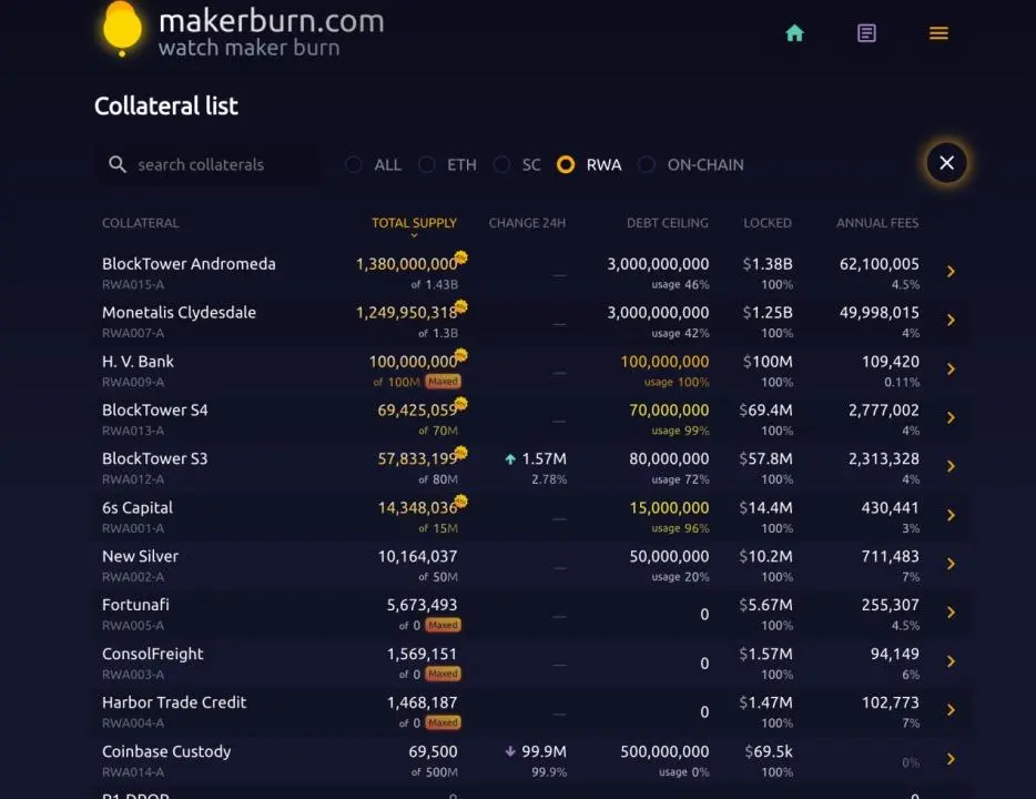 在 RWA 上获得甜头的 MakerDAO 近半年一直坚定的定投 RWA 资产,上个月一周内便增持了 1 亿美元 RWA 资产,目前拥有超 33 亿美元的 RWA 资产。