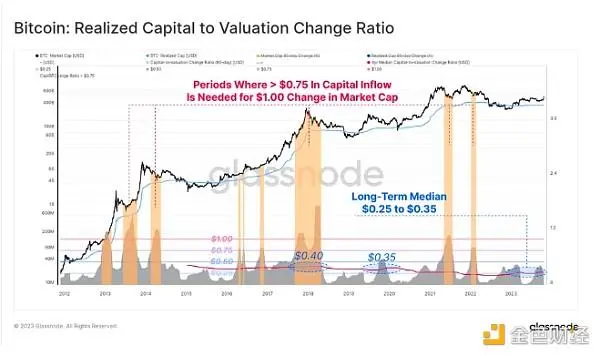 比特币:已实现资本与估值变化比率