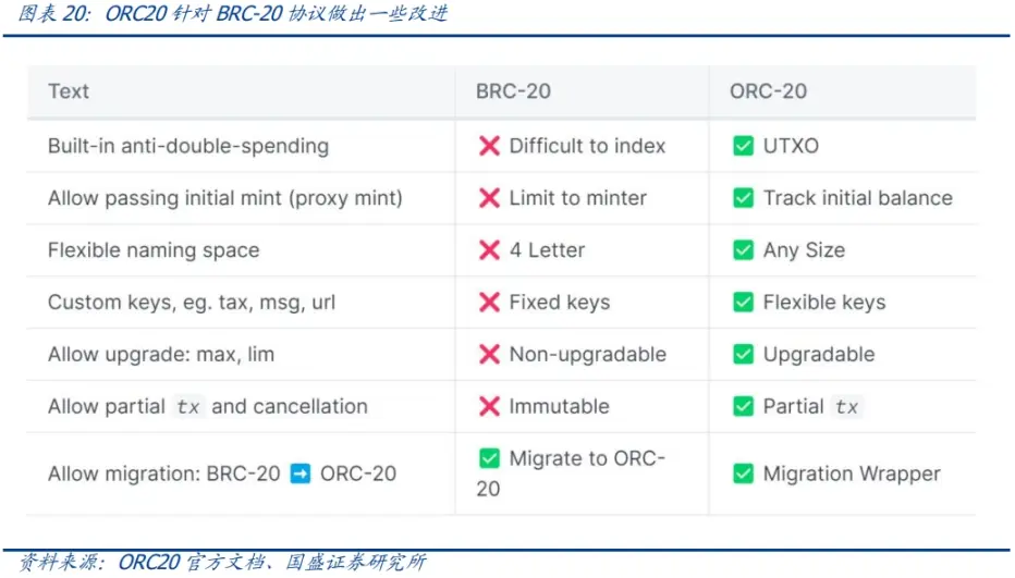 针对 BRC-20 通证的一些问题,也有社区开发者探索新的标准如 ORC20、BRC21 等协议来改进。以 ORC20 为例,主要在通过 UTXO 模型来确保交易中防双花、允许取消交易以及支持 BRC-20 向 ORC20 迁移等。当然 ORC20 努力向 ERC20 靠近的结果就是带来了更多的复杂性。而如 DeFi 中的 AMM 协议、聚合协议等原生创新目前还未出现,BTC 此次创新还处于「复制」以太坊生态的阶段。