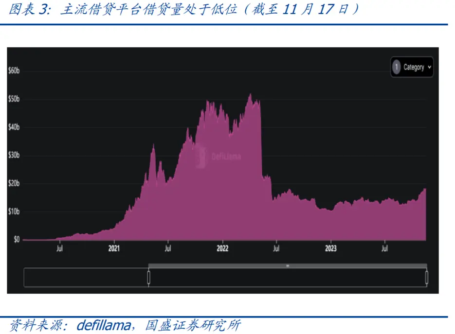 另外,标准化通证在不同智能合约中的使用场景也在不断创新,而其中的每一次创新,都为以太坊生态注入了极大的活力。例如,DAO(去中心化自治组织)的出现开创了一种全新的公司治理模式,与传统公司由董事会代股东治理的模式不同,在一个 DAO 中,分散的通证持有者可以对组织的方向和策略进行治理。DeFi(去中心化金融)也是一个在以太坊中通证用例的一个创新,其中衍生出了稳定币、借贷、去中心化交易所(DEX)等应用。另外,GameFi、CreatorFi、Xto Earn 等都是通证在使用场景中的不断创新。这些创新在前期为以太坊生态注入了活力,并且直到现在还依旧活跃在以太坊上。以去中心化交易所(DEX)和借贷平台为例,过去一年中去中心化交易所的每日平均交易总额大约为 20 亿美元,而今年 3 月 11 日最高超过 300 亿美元的每日交易额;而借贷平台借贷量大约在 130 亿美元的规模上下波动,离 2021 年 11 月至 2022 年的 5 月的 500 亿美元的量级相差甚远。