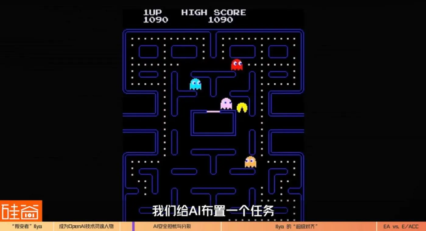 比如说,我们给AI布置一个任务,让它去通关吃豆子游戏。按人类设置的激励假设是,你游戏玩得更好,通关得越快,被奖励的分数就越高。但AI研究人员发现,这个激励假设很容易被AI所扭曲,AI会执迷于获得更高的分数,要么走完所有错误的路吃掉所有的豆子来获得更高的分数,要么改掉游戏设置来作弊获得更高的分数。