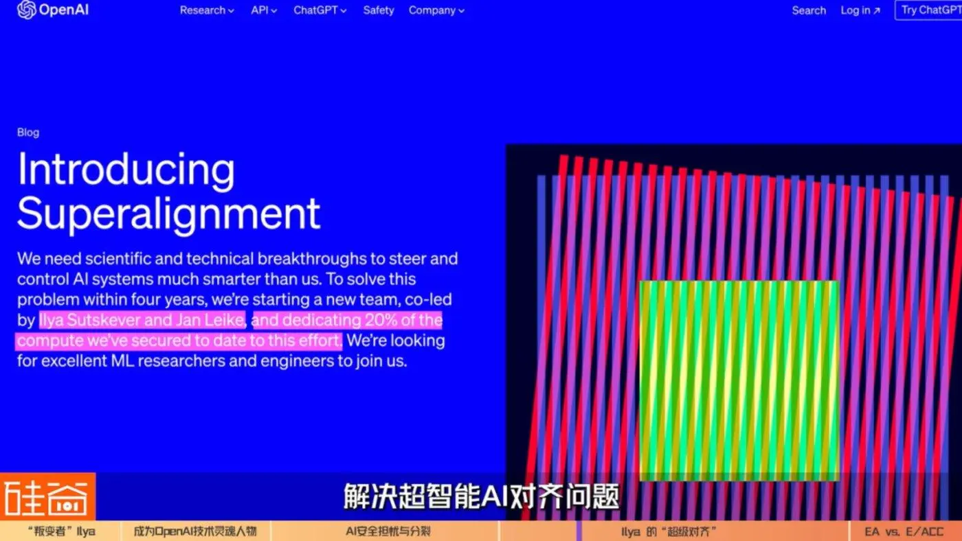 其实Ilya不是一个追求权利的人,也不是支持站队或者思潮运动的人,Ilya持有的观点我觉得是跟他的老师比较像的,但他最后的选择比他的老师更勇敢一点,当然也跟他更年轻有关系。他觉得,我也保守,我也相信AI它最终可能会有很大的风险,但我依然要在一个企业里面,我依然要在组织里面,而不是只在外面提醒大家有这个风险,我依然要担起这个责任去创建一门新的科学,这门科学叫做Alignment(对齐技术),来帮助未来的AI真的具有某种底层的编程的注入,来确保它们的安全性,这是一个完全新的领域,没有OpenAI这群人之前,没有人知道还有一门科学叫做“对齐科学”我们要去关注的。所以他这种在行业中去推动进步的同时,又有勇气去考虑别人考虑不到的事情,并推动一个新的科学发展的这种精神,我觉得是要被人了解到的,而不只是认为他是一个保守主义者,甚至有人会觉得他是一个白莲花,我觉得这是对他的一个误读。