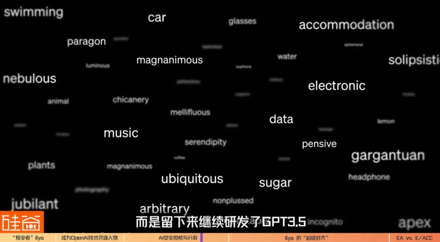 最开始的时候,OpenAI内部可以说是各路神仙打架,因为最开始都是AI技术大牛,但大牛们各自擅长和研究领域不一样,所以有点像无头苍蝇一样各种尝试,所以大家可以看到最开始OpenAI尝试过AI机器人,最开始训练AI打游戏,但最开始几年都被谷歌吊打,直到2017年,谷歌发表的Transformer架构论文Attention is all you need引发业内关注,OpenAI内部开始讨论集中火力走大模型方向,**Ilya Sutskever支持了这个方向的发展,然后,主导了GPT-1,2,3,4以及生成式画图DALLE系列模型的研发。**但是到GPT-5的时候,他启动了“叛变”,将AI安全问题上升到舆论中心。