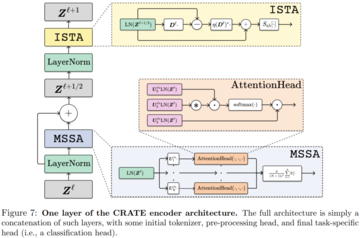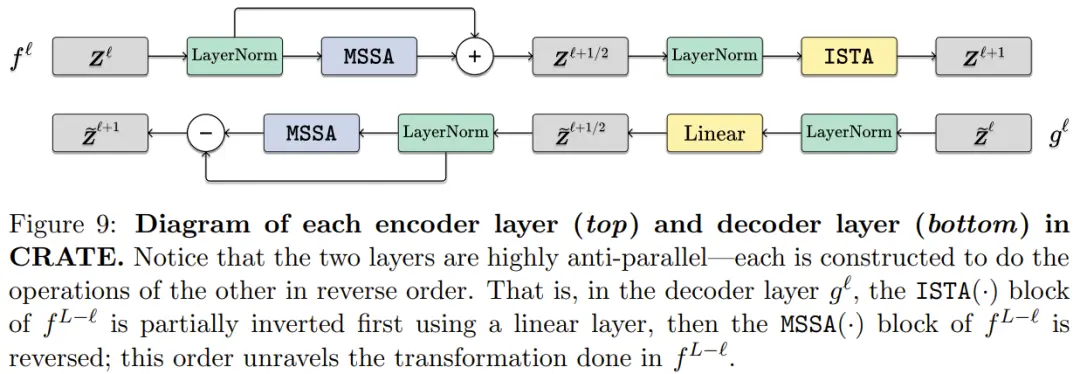下面则给出了 CRATE 编码器架构的一层。其完整架构就是将这些层串连起来,再加上一些初始 token 化器、预处理头和最后的针对具体任务的头。
