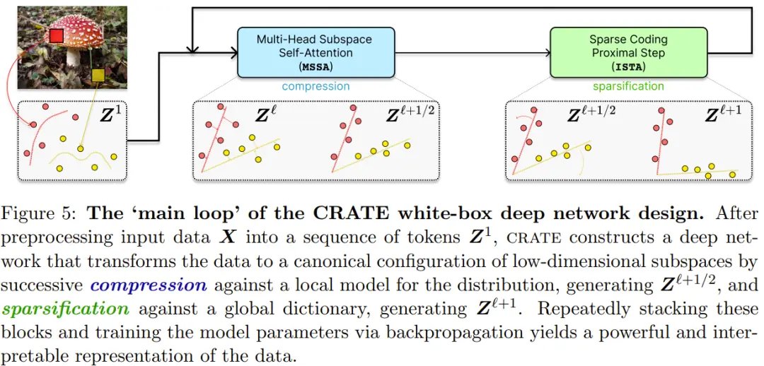下图给出了 CRATE 白盒深度网络设计的「主循环」。