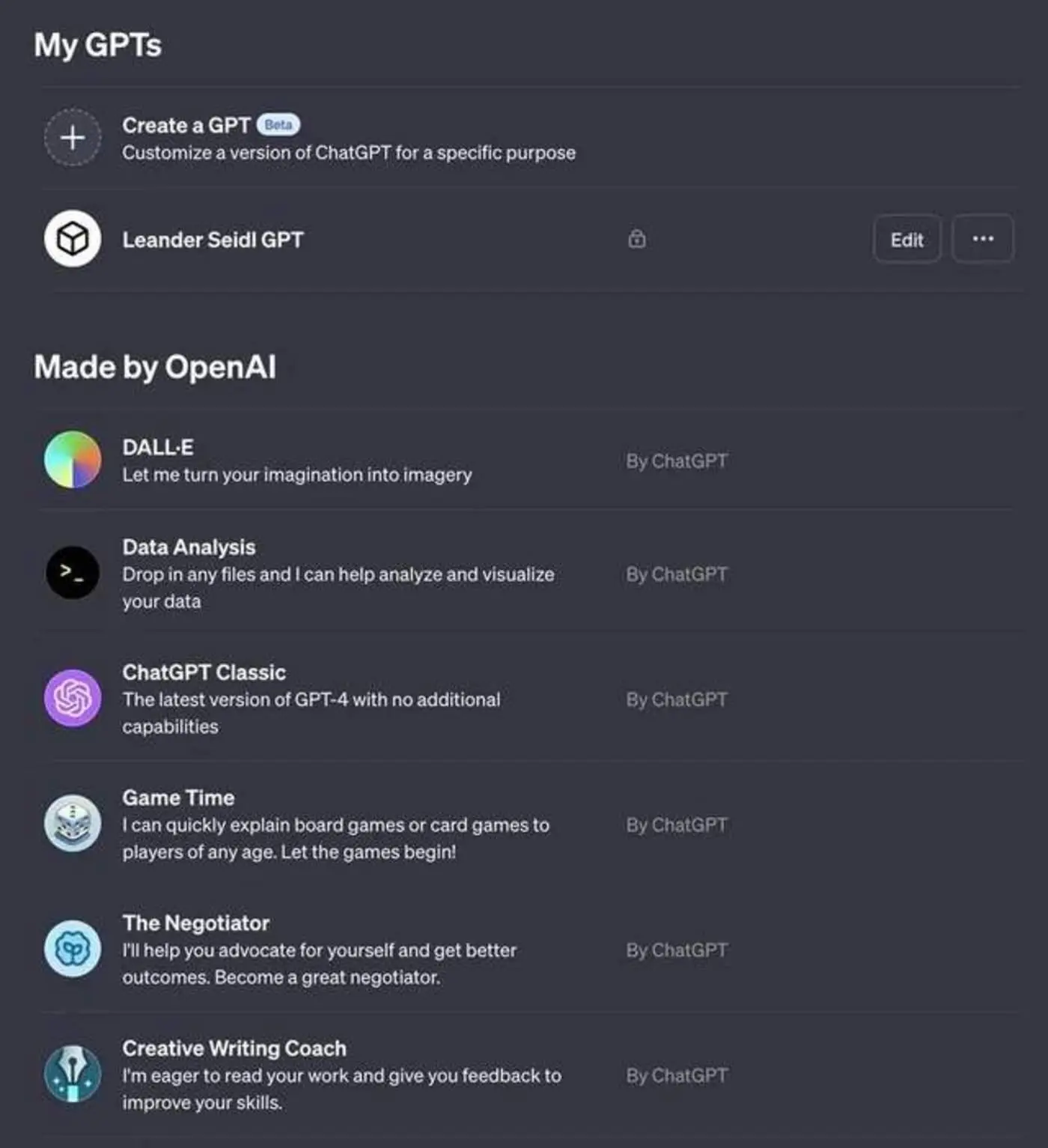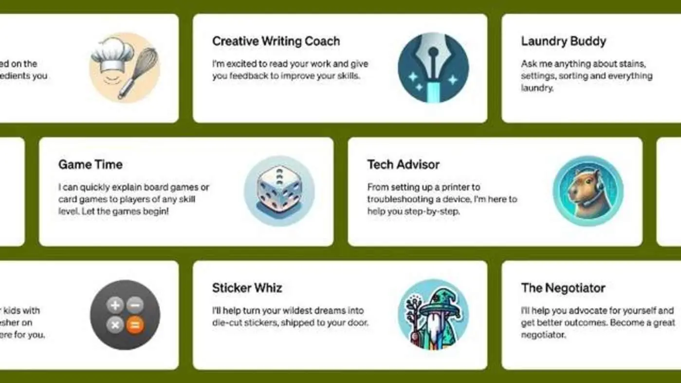 它更像各种角色扮演类AI,人们可以自定义各种角色来娱乐或者处理简单事务,比如用来生成各种文本以及用DALL-E生成图像等。