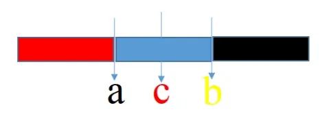 显然,a,b 两处是公平分配或者无嫉妒分配的临界点,在 a,b 中间的任何一处切开,该分配方案都是强公平分配,也都是无嫉妒分配。超公平分配是针对两个公平分配的中立处理,寻找中间的 c 处,(c 的具体位置依赖于 p1、p2 的偏好强度)。