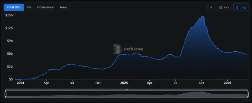 然而,“1011”事件后,利差出现了灾难性收窄,USDe也迎来了“可扩展性”的天花板,规模从接近150亿美元一路下滑至目前的60亿美元。