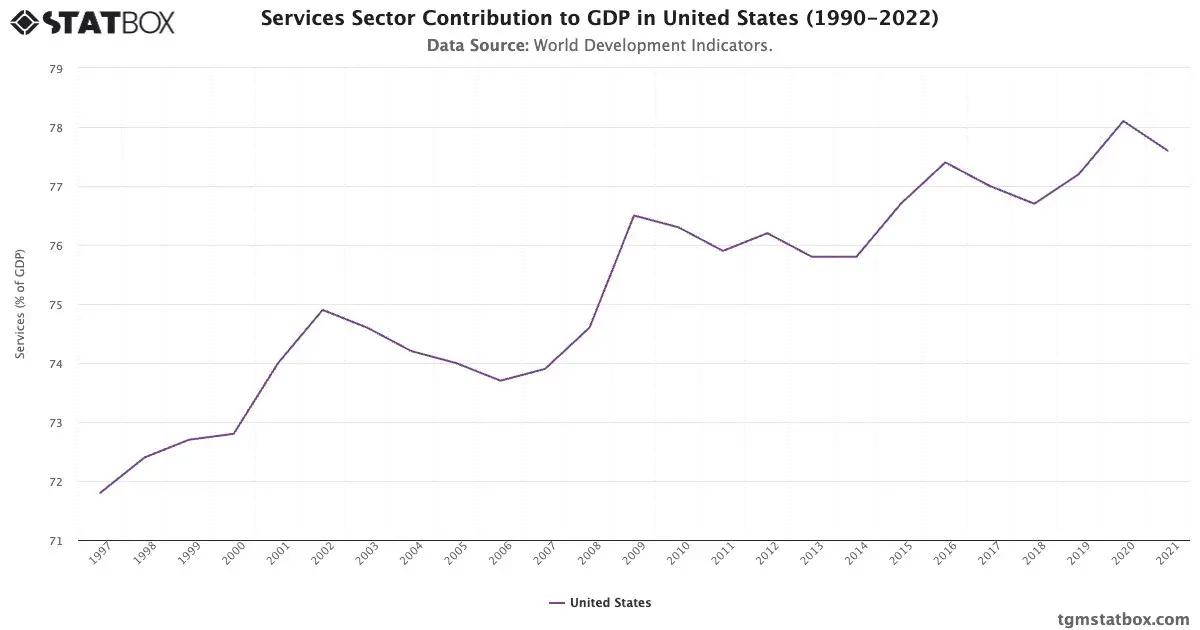 当知识的供应变得丰富时,知识工作的价格自然会下降。服务业占美国 GDP 的近 80% 。如果运营成本下降,创办小企业就会变得更加容易;服务价格下降,家庭的参与度就会提高。