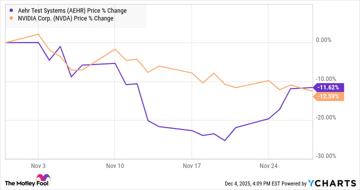 Aehr Test Systems(AEHR +14.89%)在十一月的股价表现几乎成为了关于人工智能(AI)资本支出泡沫是否正在形成的更广泛辩论的缩影。根据标普全球市场情报提供的数据,股价在十一月下跌了11.6%,市场似乎选择了所谓的“AI休整”,但这是否是一个买入良机,还是更深跌势的开始?
