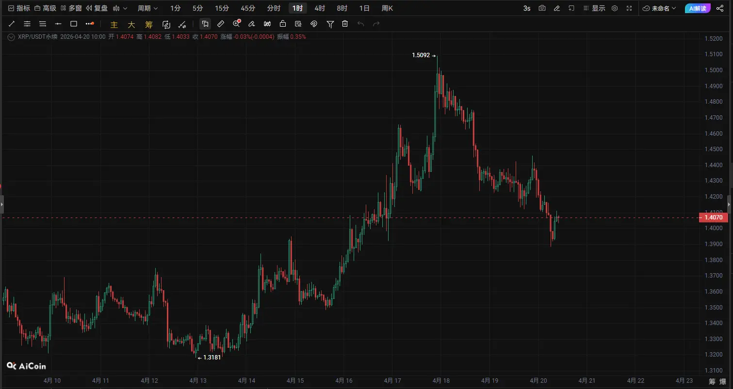 XRP关键多空决战!1.40美元成命运分水岭,下一波趋势或即将爆发|4月20日行情深度解析