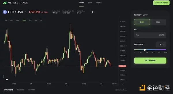Merkle Trade 的交易界面 来源:Merkle Trade 官网