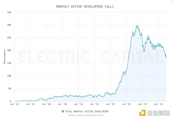虽然今年年初至今因悲观情绪,月度活跃开发者有所下降,但是相比 2022 年年初已经有了大幅的增长。而且我们相信,随着 Aptos 持续的按月进行升级优化公链,会有越来越多的开发者加入。