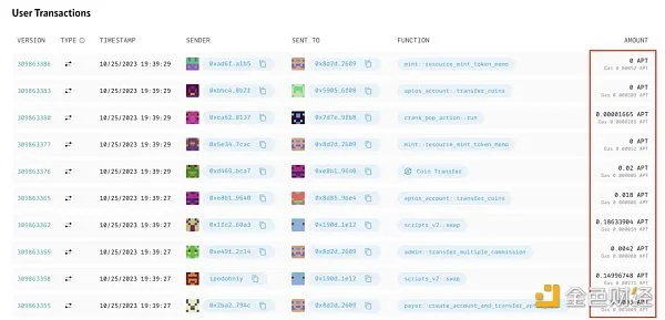 低于 0.01 美分/笔的交易费用 来源:Aptos Explorer