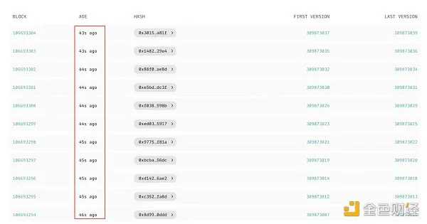 Aptos 低于 1 秒的实际出块时间 来源:Aptos Explorer