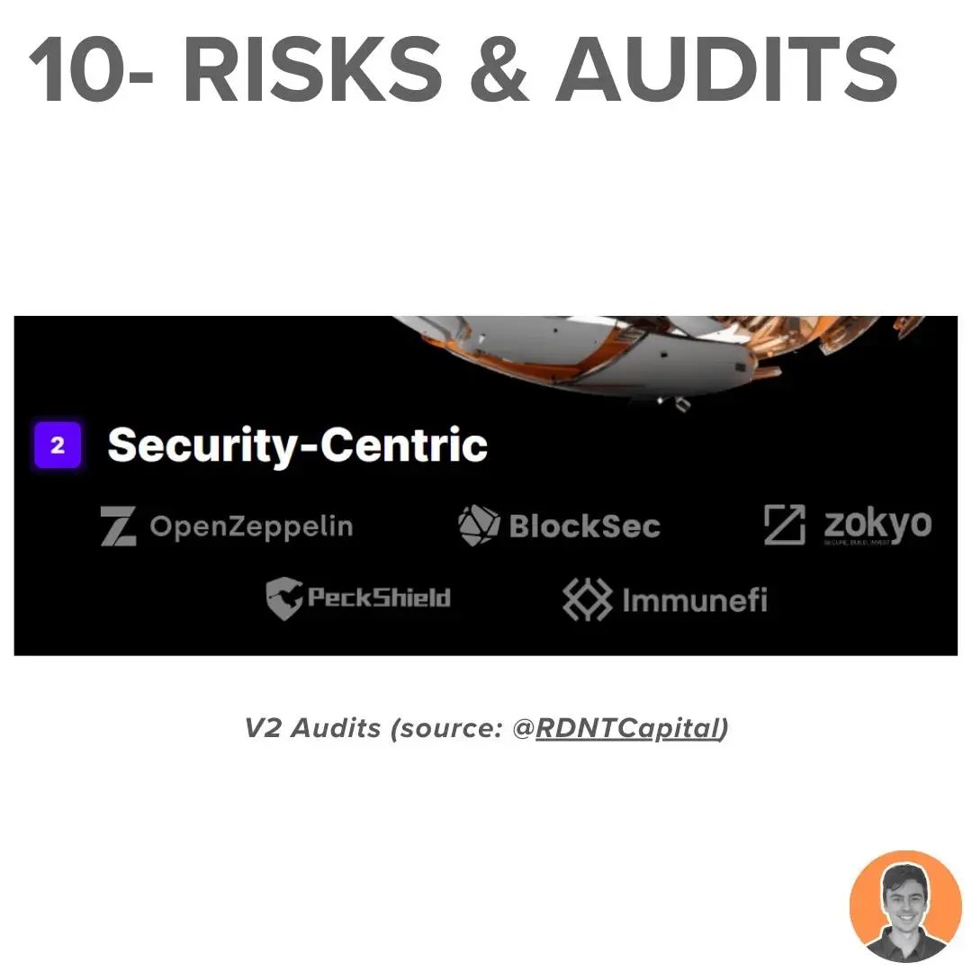 代码库的 V2 已经由 Open Zeppelin、Peckshield 和 Zokyo 进行了审计,没有未解决的重要或高风险问题。