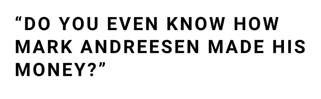 Web2 和 Web3 世界的主要人物之一?风险投资公司 A16Z 的创始人马克·安德森。尽管这家风险投资公司在加密领域有一定的声誉(喷洒、祈祷,并且永远不卖),但在 Web2 方面它还有另一个声誉:是世界上有史以来最伟大的技术投资者。