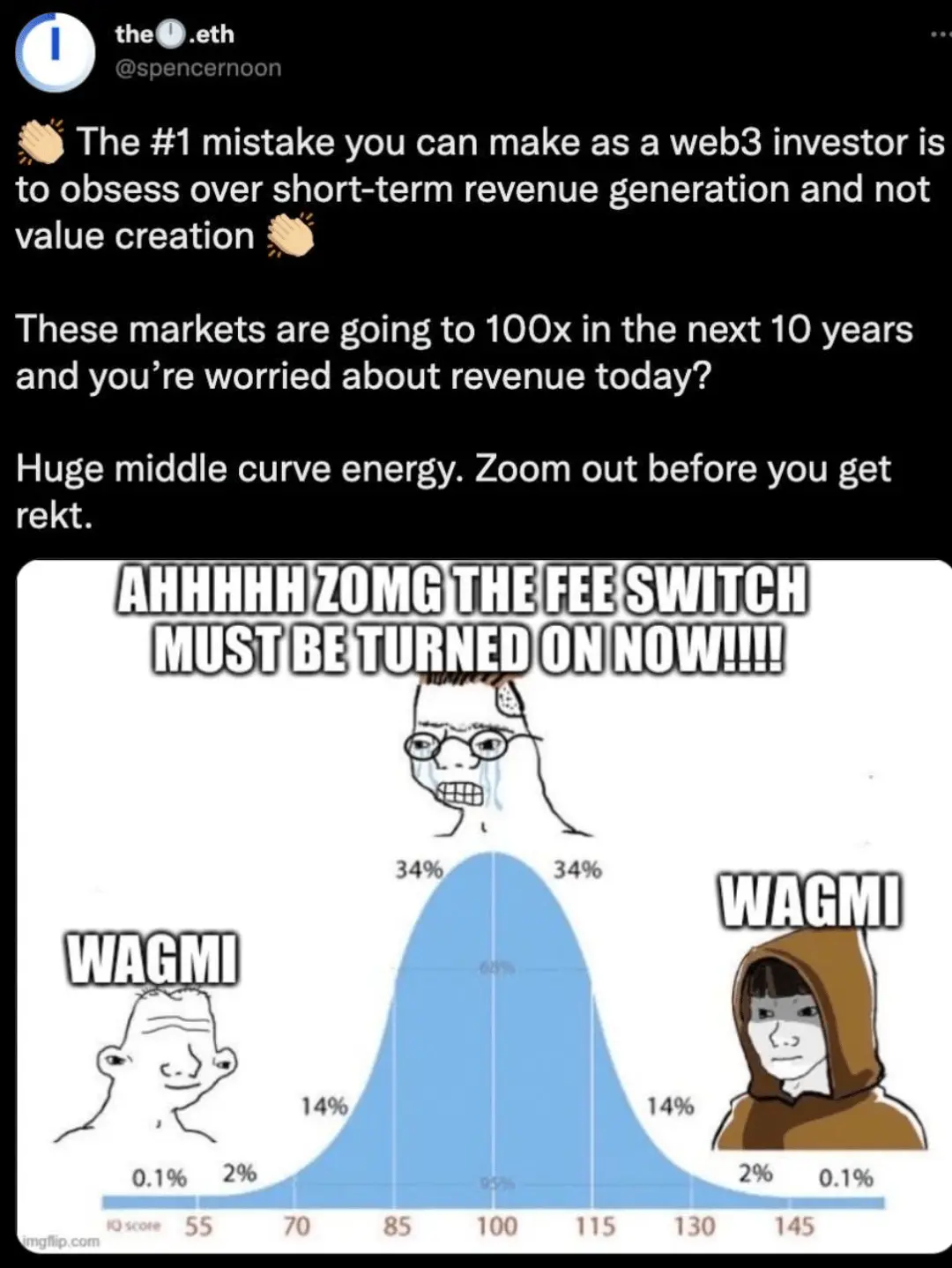 就我个人而言,我相信协议和应用程式都可以积累价值:以太坊需要有价值才能成为资产的有效保管者,否则它在经济上就不安全。同样,应用程式也可以根据其效用收费。确实感觉到以太坊在合并后转向净通胀的‘货币’模型,通过烧毁费用,是改变‘瘦弱(无价值)协议’范式的一大步。