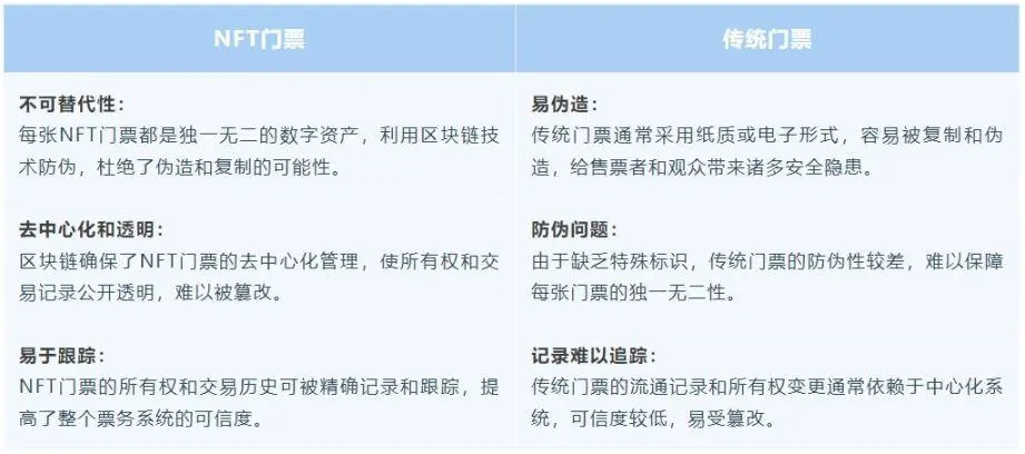 NFT 门票借助区块链技术提供了更安全、透明和可追踪的解决方案,有效弥补了传统门票在安全性、便捷性和可持续性方面的不足。