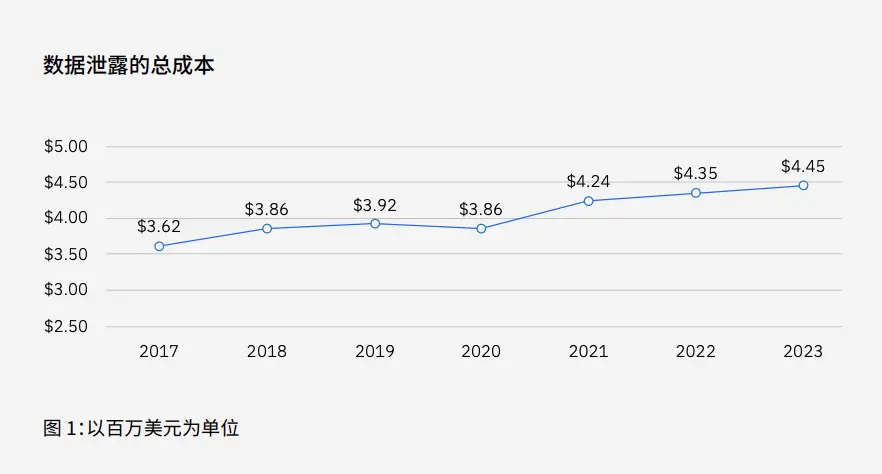 2023 年,数据泄露的平均成本达到 445 万美元,创下历史新高。相较于 2022 年的 435 万美元,该成本增加了 2.3%。拉长时间线来看,平均成本较 2020 年报告中的 386 万美元增加了 15.3%。